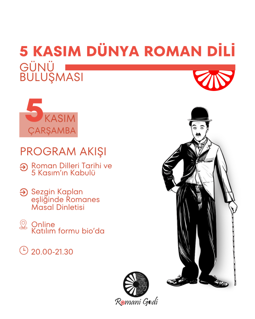 5 Kasım Dünya Roman Dili Günü’nü kutlamak ve Roman dili ve kültürünün zenginliğini vurgulamak amacıyla 5 Kasım 2025 tarihinde saat 20:00’de gerçekleştireceğimiz buluşmamıza katılımınızdan mutluluk duyarız. Bu buluşmada, Roman dillerinin tarihini, 5 Kasım’ın kabul sürecini ve Romanes dilinde masalların dinletisini Sezgin Kaplan eşliğinde yapacağız.